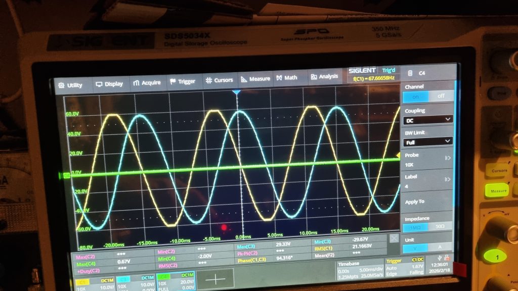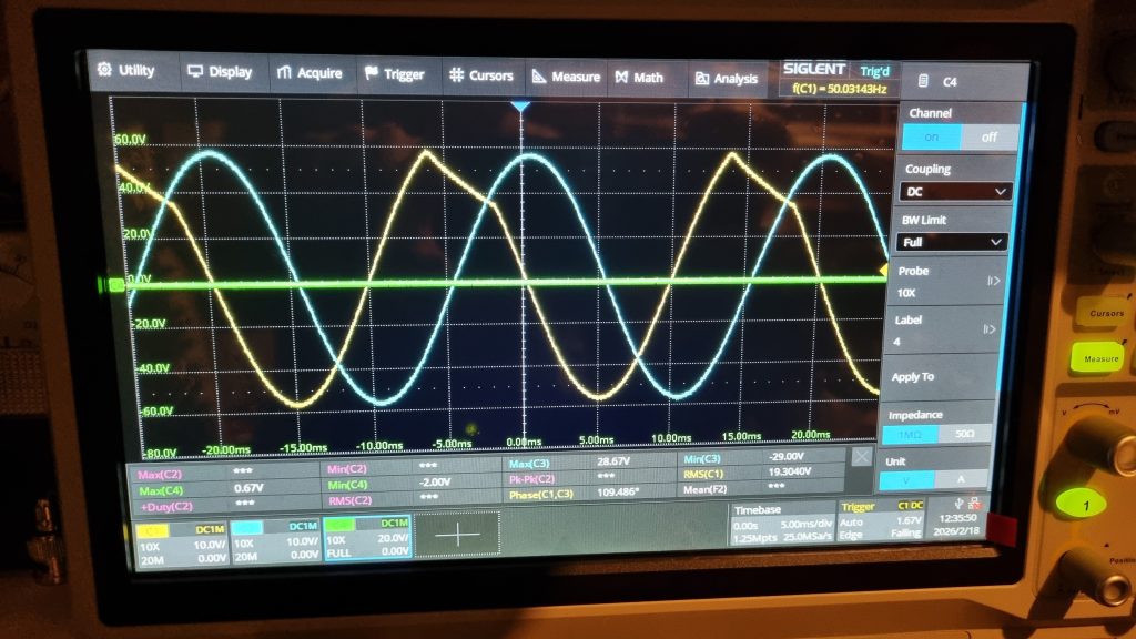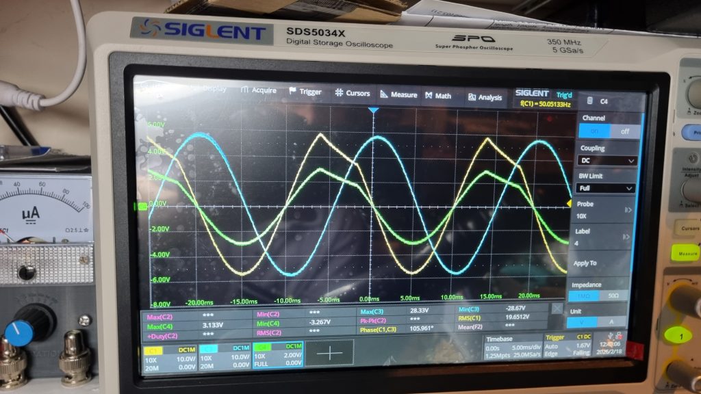 The output waveform levels were then adjusted for each channel and respective speed (the 4 adjustment pots on the board) to 19.5V RMS (was clipping at just over 21V RMS)