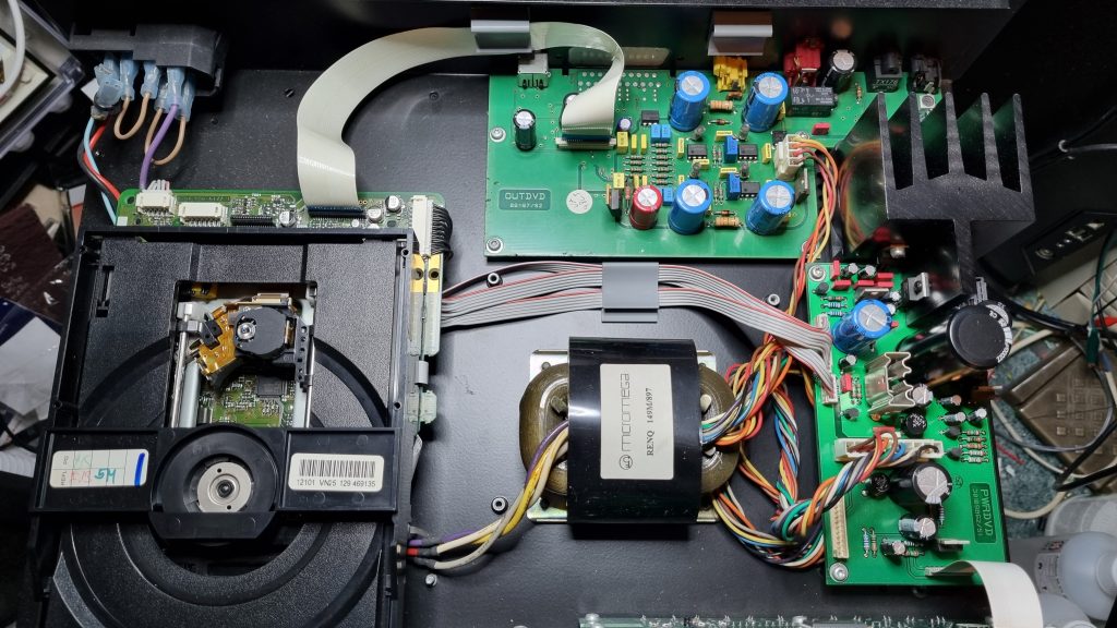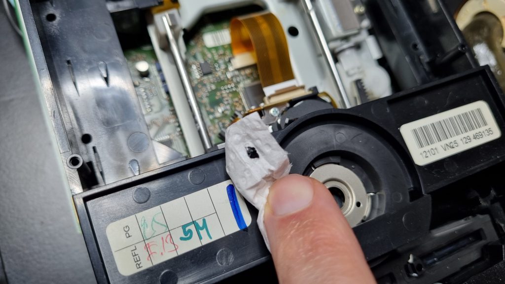 The pickup lens and the optical path were cleaned, and even though the grease looked ok, cleaned and re-greased the sled sliders, found a small bit of black material on one, but didn’t really think this was the issue. It seemed to be playing CDs and DVDs fine.