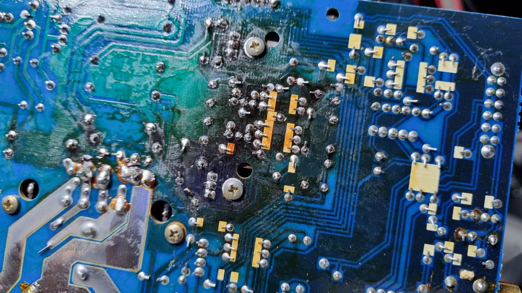 Almost every solder joint in that area had cracked and failed… Just look how dark that area of the board has become over time too!