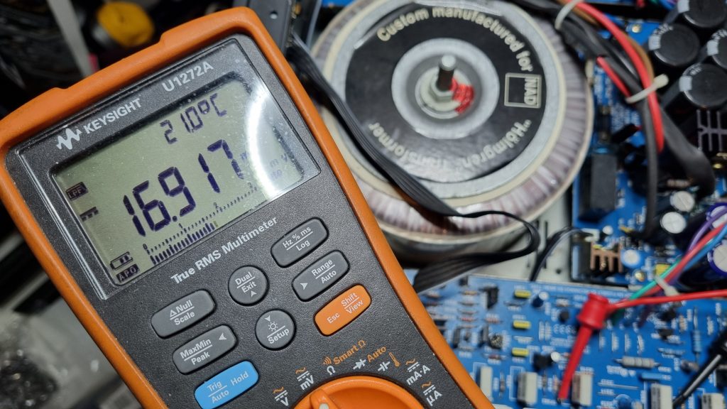 Quiescent current for both channels was adjusted according to service manual (18.5mV +/- 1.5mV), no load, volume 0 – set to ~17mV initially and rechecked after 20 minutes for stability.