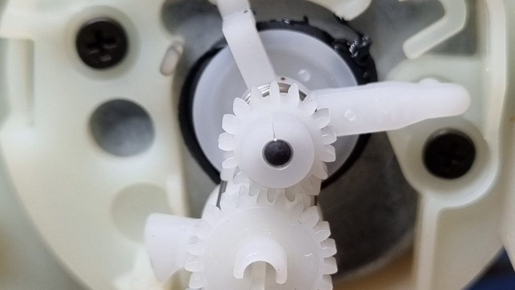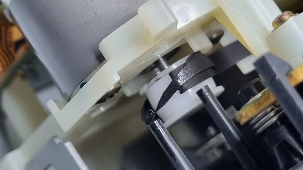 A quick look at the mechanism confirmed worst fears – the belts had reverted back to goo (apparently insufficient/incorrect chemicals during vulcanisation process?)