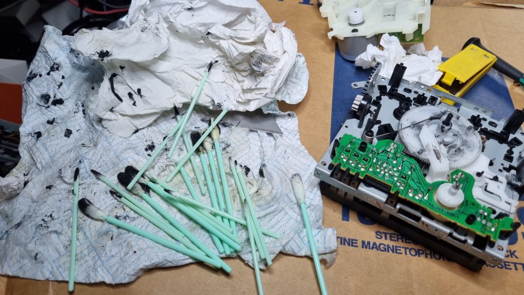 Found the tape detection switches didn’t work properly (oxidised) meaning the unit didn’t think a tape was in there when it was etc. Finger covers are quite fragile so needed care to gain access: