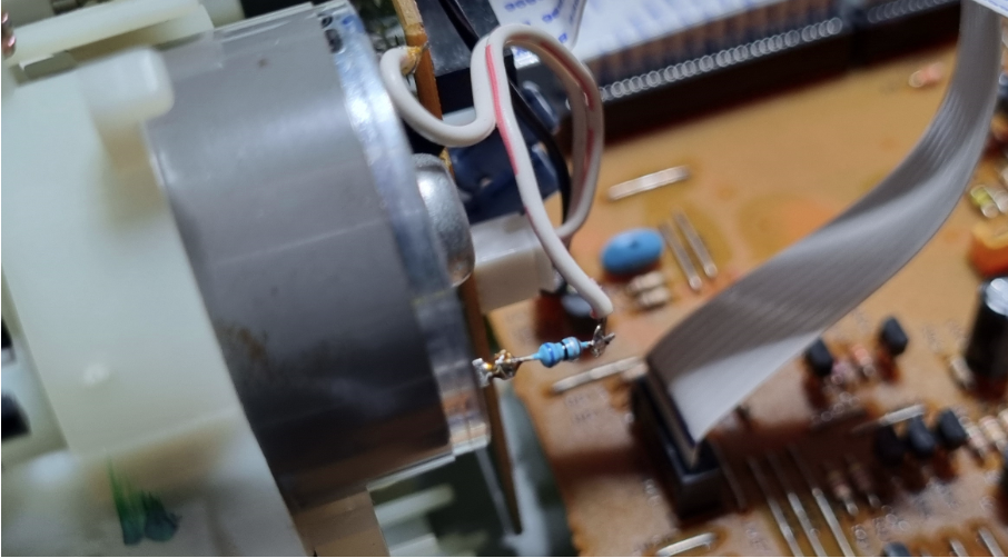 Noticed a little excessive take up torque so resistor mod added to motor to limit a little: